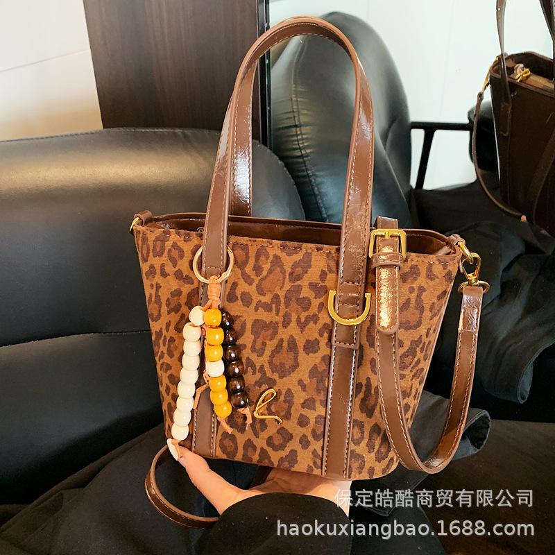 Premium sense retro portable small bag women's 2025 autumn and winter new leopard print commuter shoulder bag fashion messenger bag