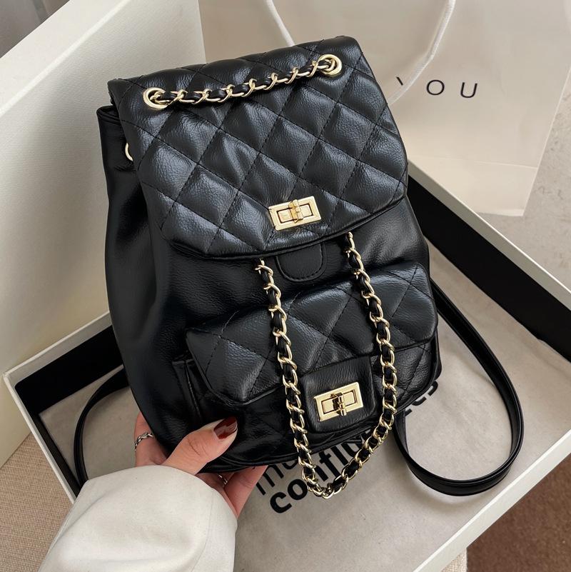 School bag female spring college student backpack large capacity bag 2025 new trendy diamond chain lightweight travel backpack