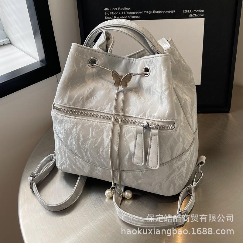 Silver bag women's 2025 new fashion backpack design sense school bag college student shoulder crossbody bucket bag