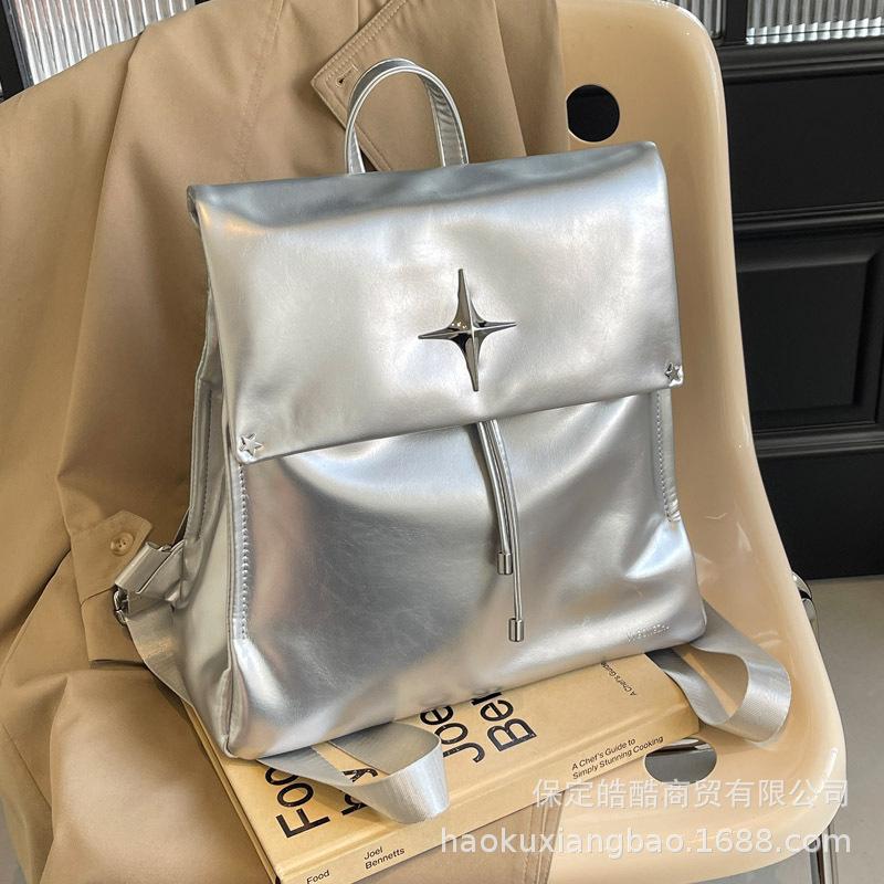 Korean silver backpack female versatile 2025 new trendy fashion large capacity student commuter schoolbag travel backpack