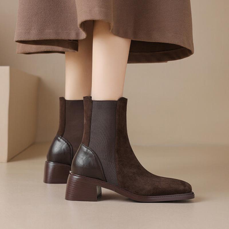 Herbst- und Winter Wildleder Martin Stiefel Gummisohle große Größe mittlerer Absatz Lederstiefel bequem quadratisch und koreanische Version der neuen quadratisch und ich