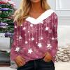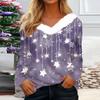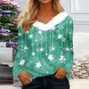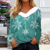 Damenmode Lässig Langarm Weihnachten Bedruckt Plüschkragen V-Ausschnitt Oberteil