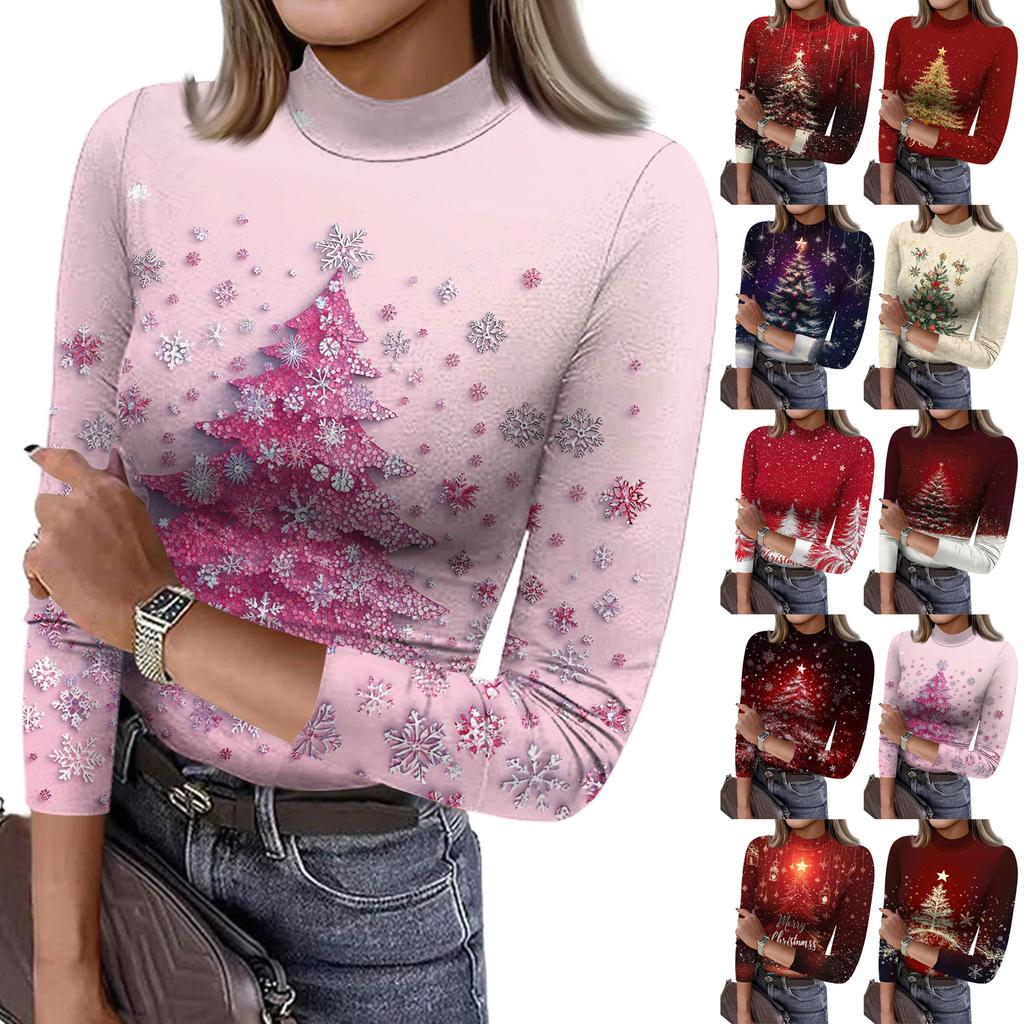 Damen Slim Bottom T-Shirt Mode Lässig Farbverlauf Druck Rundhals Pullover 3/4 Ärmel Top
