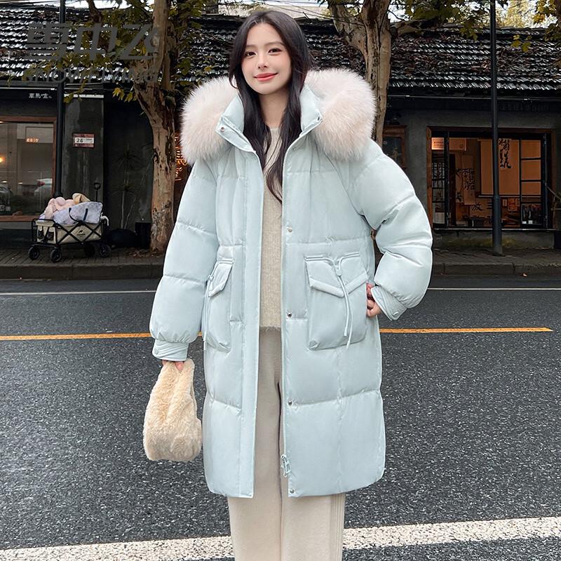 Snowflying Women's Long Down Jacket with Fox Fur Collar