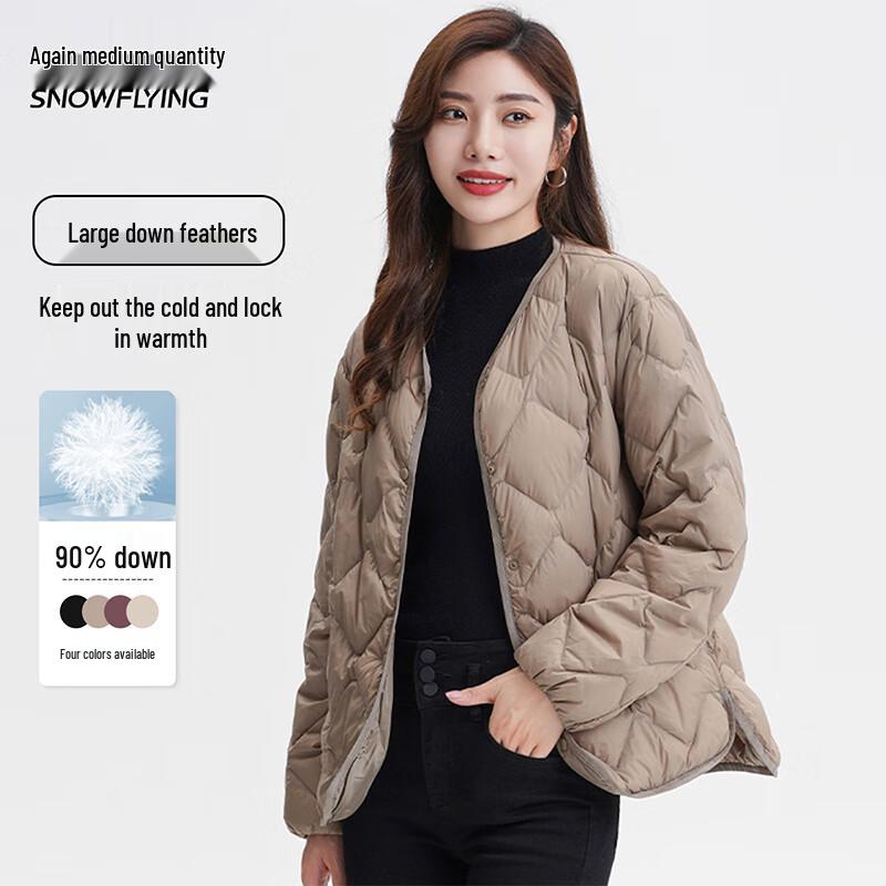Xuezhongfei Damen-Daunenjacke, leicht, V-Ausschnitt