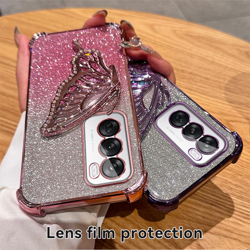 Glitzer Stoßfest Verchromung Treibsand Schmetterling Handyhalter Hülle für OPPO Reno 14 14F 13 13F 12 12F 11 11F 10 Pro Silikonhülle