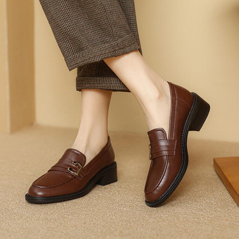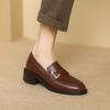 Neue bequeme modische Einzelschuhe runde Zehenpartie bedecken die Füße ein Pedal dicke Sohle rutschfest große Größe Damenschuhe mittlerer Absatz Blockabsatz kleines Leder