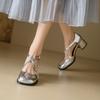 Neue Sommer hohe Sandalen lässige Damen Römersandalen Gummi weiche Sohle Schnalle dicke Sohle hoher Absatz Blockabsatz runde Spitze