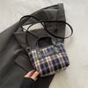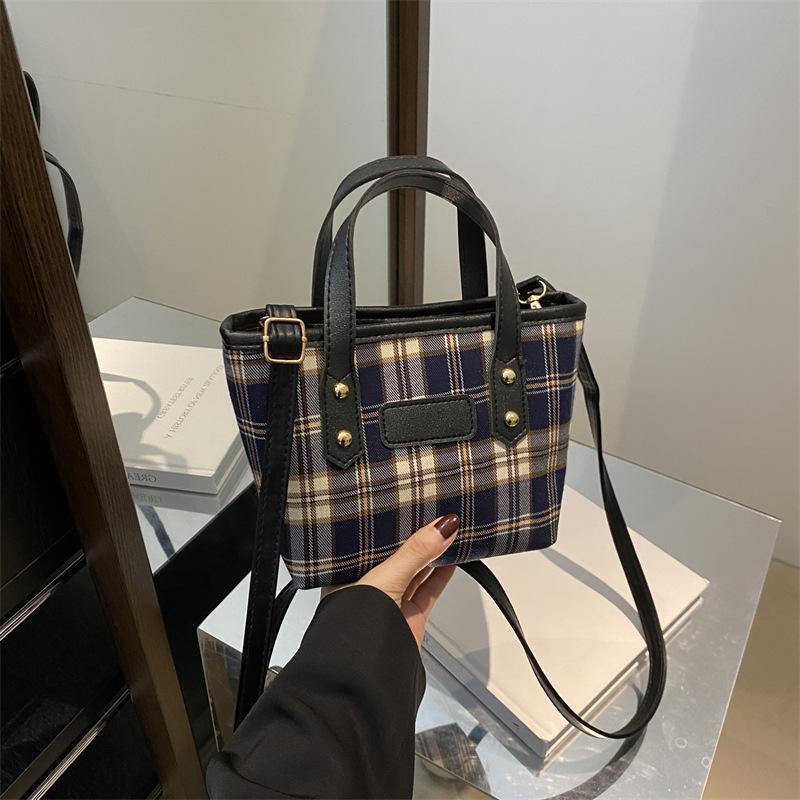 Light luxury plaid portable bucket bag women's classic niche design foreign-style texture shoulder messenger bag