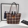 Autumn and winter retro large-capacity handbag women's 2025 new leisure commuter plaid college student class tote bag