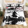 Japanische Samurai Bettwäsche Set Doppelgröße Kirschblüten Bettdeckenbezug Rote Sonne Hokusai Bettbezug