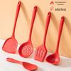Hochtemperatur-Beständiges Silikon Küchenutensilien-Set: Spatel, Schöpfkelle, Schaumlöffel und Reislöffel für Antihaftpfannen.