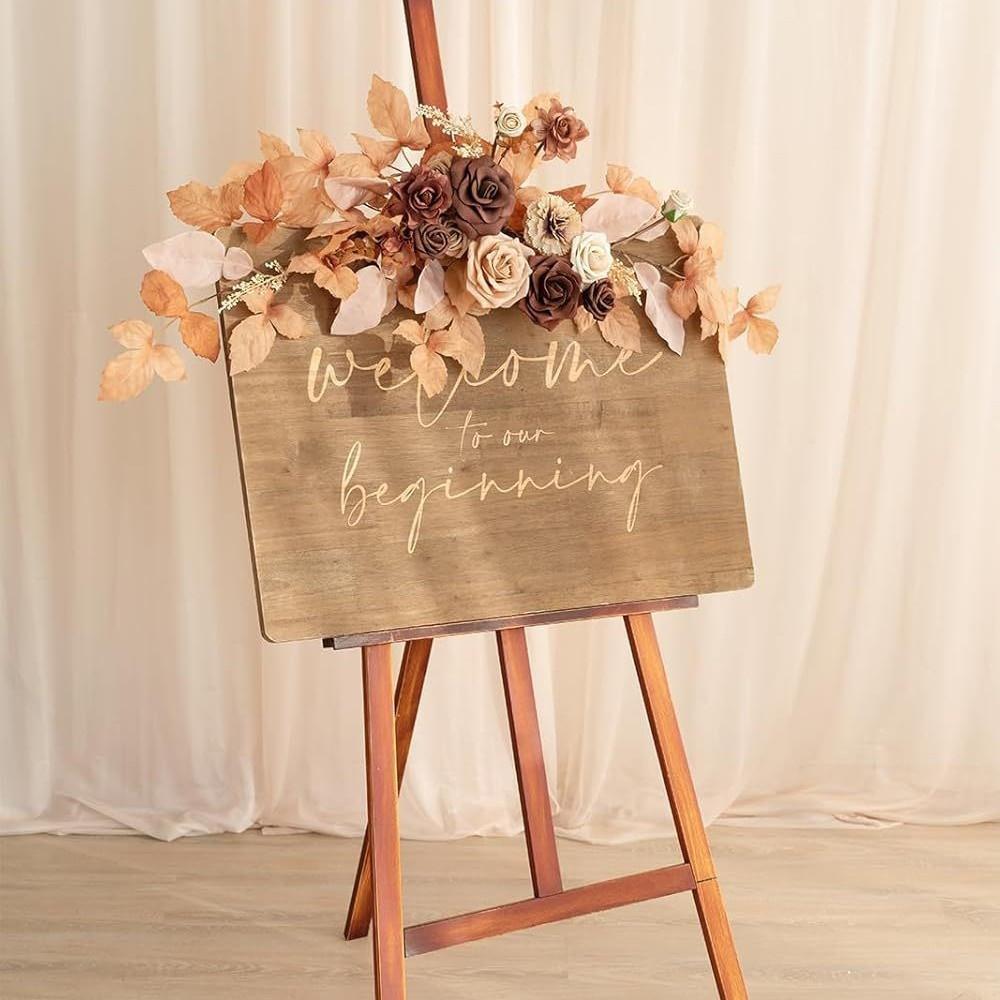 1 Stück Simulation Hochzeit Künstliches Willkommensschild Rosenblütenanhänger für Outdoor Hochzeitszeremonie Empfangseingang Party Bankett Staffelei Wanddeko