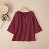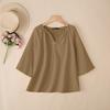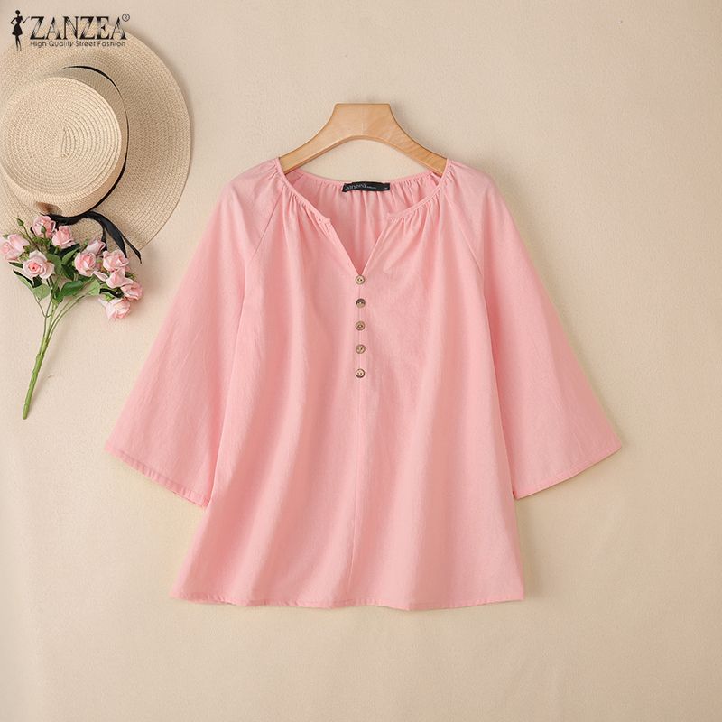 ZANZEA Lässige Damenbluse mit Rundhalsausschnitt und 3/4-Ärmeln, lockere Baumwollbluse