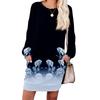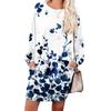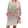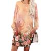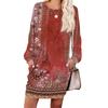 Damen Retro Bedrucktes Modisches Langarm Rundhals Taschenkleid