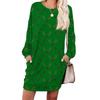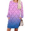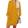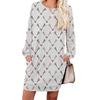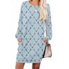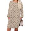 Damen Retro Bedrucktes Modisches Langarm Rundhals Taschenkleid