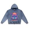 DTG-Druck Gestrickter Denim Zip-Up Hoodie Synthwave Sonnenuntergänge Bruder-Druck Reißverschluss-Hoodies