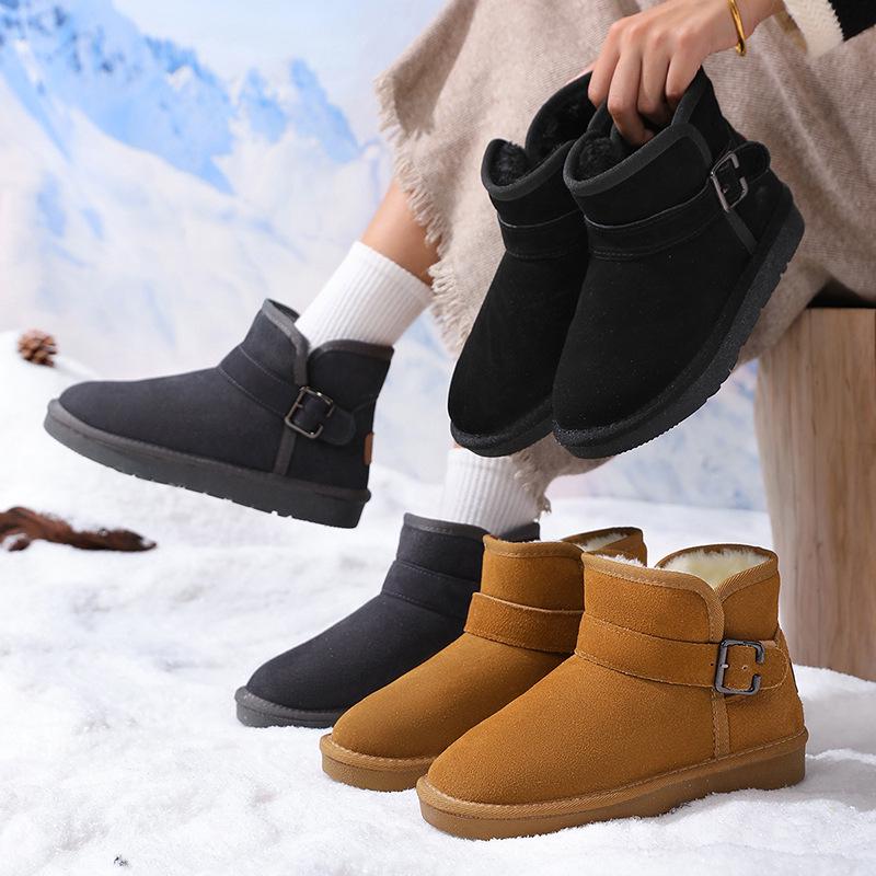 Schnalle Echtleder Schneestiefel - Herren- & Damen Winter Plüschgefüttert, Rutschfest, Verdickte Slipper Baumwollschuhe.