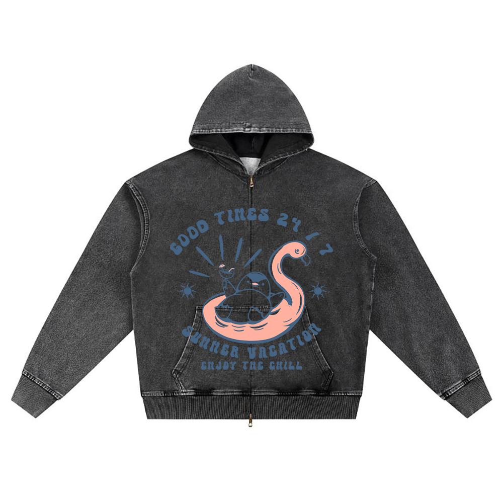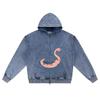 DTG-Druck Strick-Denim-Kapuzenpullover mit Reißverschluss, Vintage-Sommer 12 Brother Print Zipper Hoodies