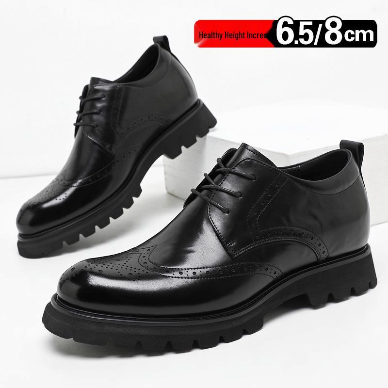 Herren 8cm Brogue Business Derby Schuhe - Schnürschuhe Rindsleder