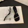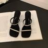 Damen 2025 Sommer Sandalen mit quadratischer Zehenpartie und Kristallabsatz - Schwarze Strass-Sandalen