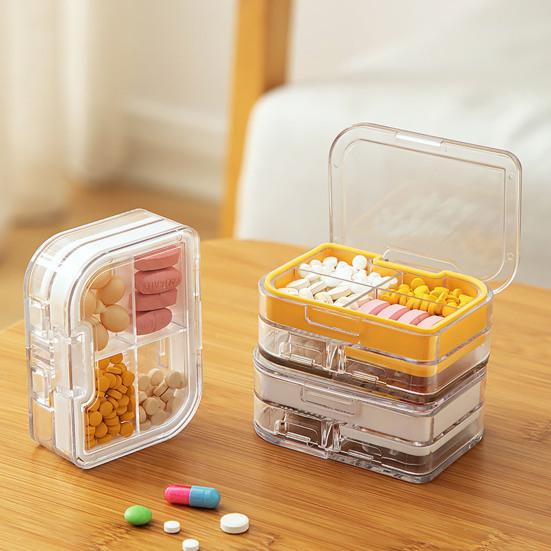 Die Pillendose vereint Schneide-, Zerkleinerungs- und Aufbewahrungsfunktionen in einem kompakten Design und ist somit ideal für unterwegs. Diese aus strapazierfähigem PP-Material gefertigte Pillenaufbewahrungsbox ist leicht zu reinigen und sorgt dank der unterteilten Fächer dafür, dass die Pillen geordnet bleiben.