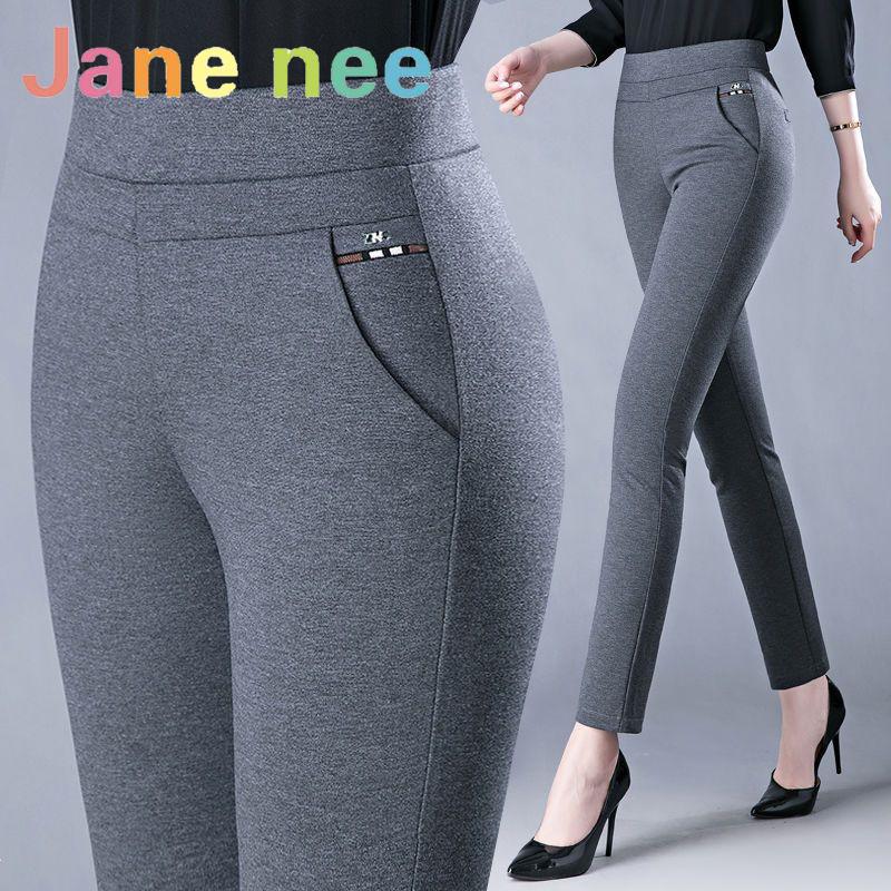 Frühling Herbst Elegante Hohe Taille Casual Stretch Schlanke Frauen Mittleren Alters Hosen Damen Mode Alle Spiel Schwarz Grau Bleistift Hosen