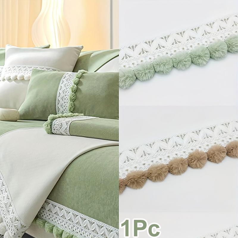 Dieses entzückende und vielseitige Spitzenband mit Pompon-Quasten verkörpert Eleganz und Verspieltheit mit sanften Tönen und exquisiten Details.. Jeder Abschnitt des Bandes besteht aus weicher Spitze und flauschigen Pompons.. Die zarten Quasten fallen sanft wie Spitze und verleihen jeder Kreation eine künstlerische Note.. Ob auf Kleidung oder als Heimtextilien verwendet, es wertet den Gesamtlook sofort auf und verleiht selbst gewöhnlichen Gegenständen neues Leben.. Eine breite Farbpalette bedient vielfältige Designinspirationen und passt problemlos zu Stilen von sanft und mädchenhaft bis romantisch und retro.. Es ist mehr als nur ein dekoratives Material; es ist eine Möglichkeit, Schönheit und Kreativität auszudrücken. Wählen Sie dieses Pompon-Quastenband, um jedes Detail Ihres Lebens die Wärme und einzigartige Schönheit handgefertigter Handwerkskunst ausstrahlen zu lassen.