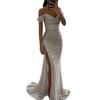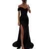 Wir stellen Ihnen das atemberaubende Abendkleid für Damen vor, mit schulterfreiem Design, langen Ärmeln und einem stilvollen Schlitz, der Ihre Figur betont.