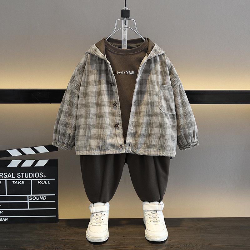 Dieses stilvolle Anzugset für Jungen ist perfekt für die Frühlings- und Herbstsaisonen 2025.. Der Anzug ist aus hochwertigem Cord gefertigt und bietet eine weiche und strapazierfähige Textur für ganztägigen Komfort.. Das Set besteht aus einer langärmligen Jacke und passender Hose, entworfen mit einem klassischen Karomuster, das jedem Anlass einen Hauch von Raffinesse verleiht.. Begleitet von einem passenden Hemd, ist dieses Ensemble ideal sowohl für zwanglose Ausflüge als auch für formelle Anlässe und sorgt dafür, dass Ihr Kleiner schick aussieht und sich wohlfühlt.