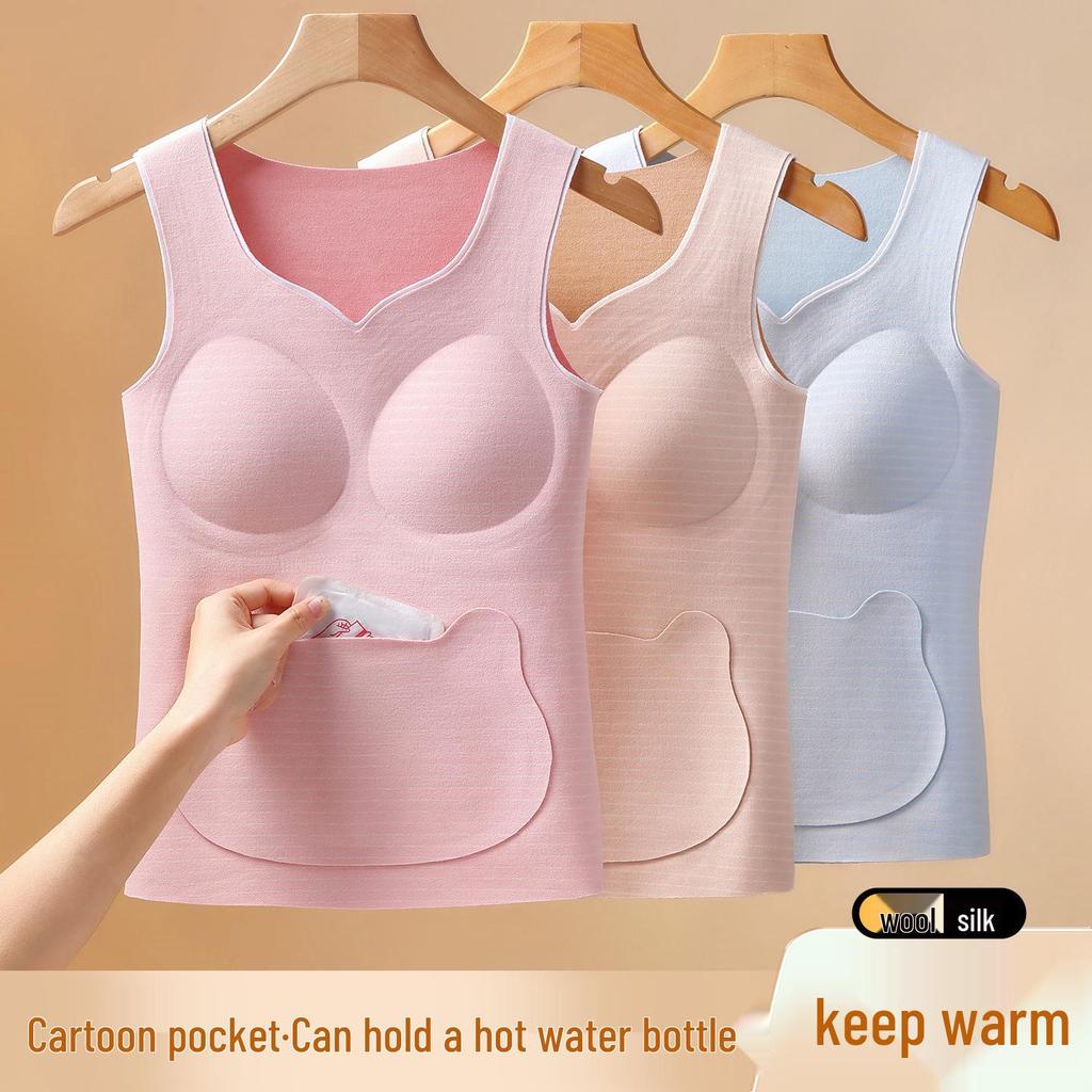 Damen Thermoweste mit Plus Samt - Warme Seiden-Basisschicht mit Brustpolster für Teenager