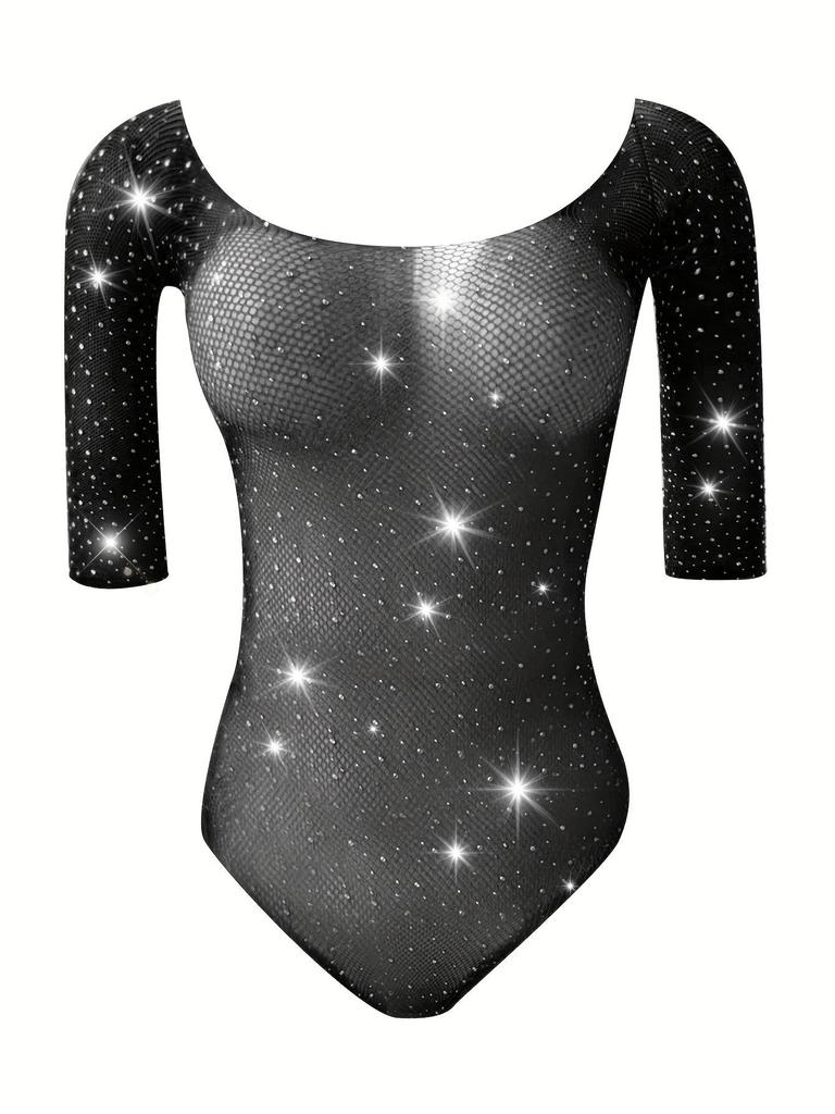 Sternenbesetztes Strass-Netz-Bikini-Dessous - T1006