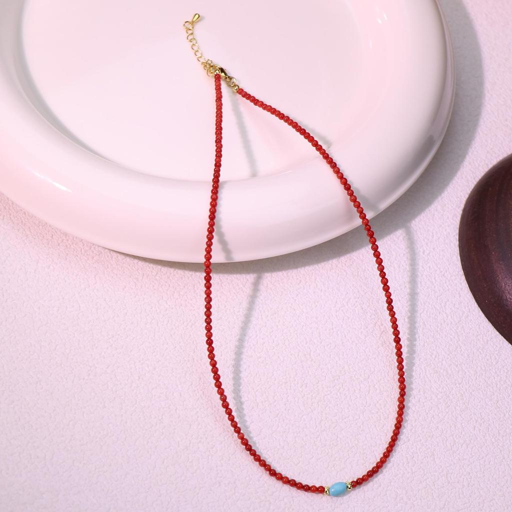 Red Agate & Turquoise Pendant Necklace - Elegant Fashion Choker for Women