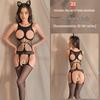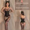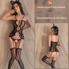 Intrigue Lingerie: Damen Verführung Set mit offenem Schritt und transparenten Netzstrümpfen