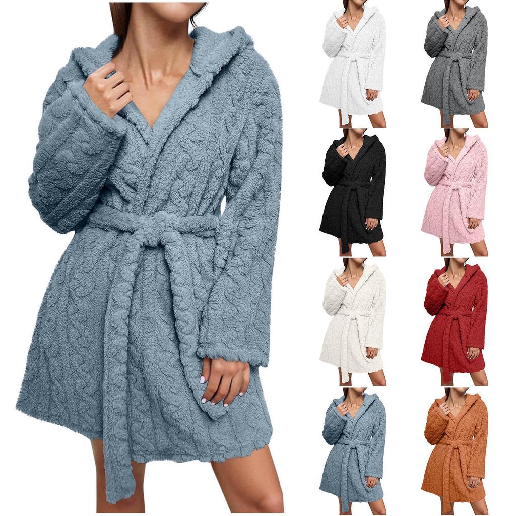 Kuscheln Sie sich in Komfort und Wärme mit diesem flauschigen Bademantel mit Kapuze, der im europäischen und amerikanischen Stil gestaltet ist.. Perfekt für die kühleren Herbst- und Wintermonate, dieser Bademantel ist aus hochwertiger Polyesterfaser gefertigt und sorgt für ein weiches und gemütliches Gefühl.. Seine luxuriöse, flauschige Textur lädt zur Entspannung ein, während die praktische Kapuze eine zusätzliche Wärmeschicht bietet.. Ideal zum Entspannen zu Hause, dieser Bademantel wird sicher zu einem festen Bestandteil Ihrer Garderobe.