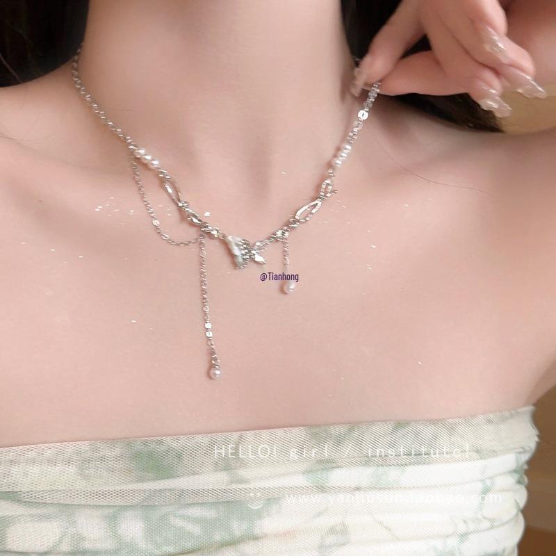 Elegante Perlenquasten-Schmetterlingskette - 2025 Leichter Luxus Schlüsselbeinchoker für Frauen