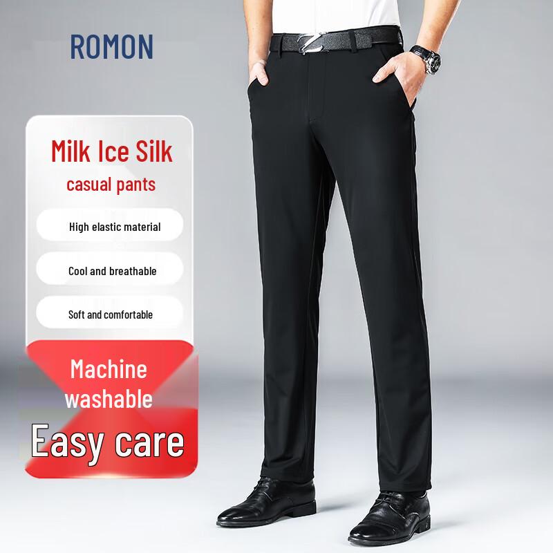 ROMON Men's High-Elastic Ice Silk Business Casual Straight Pants