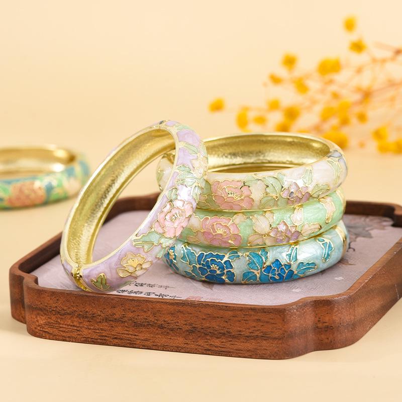 Cloisonné Pfingstrosenblüte Mode Armband - Perfektes Souvenir Geschenk für Freundin oder Mama