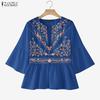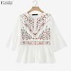Merkmale:Eine Bluse mit Rundhalsausschnitt, Dreiviertelärmeln und einem blütenförmigen Lotusblatt-Saum