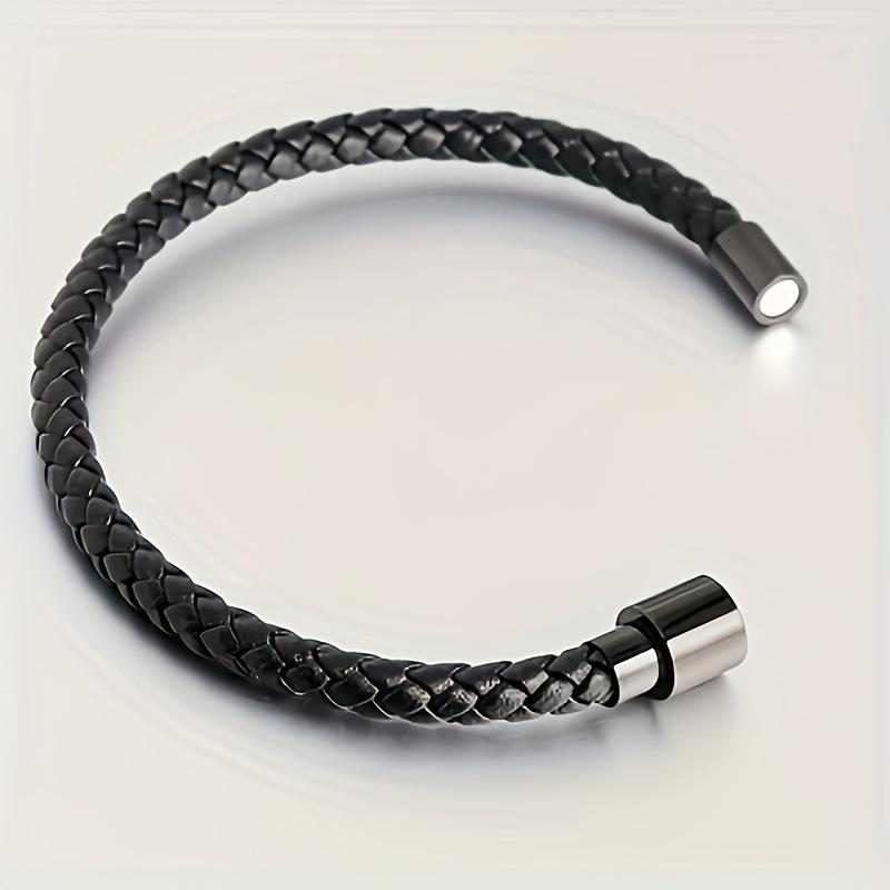 Herren Schwarz Leder Geflochtenes Armband - Minimalistischer Europäischer Stil