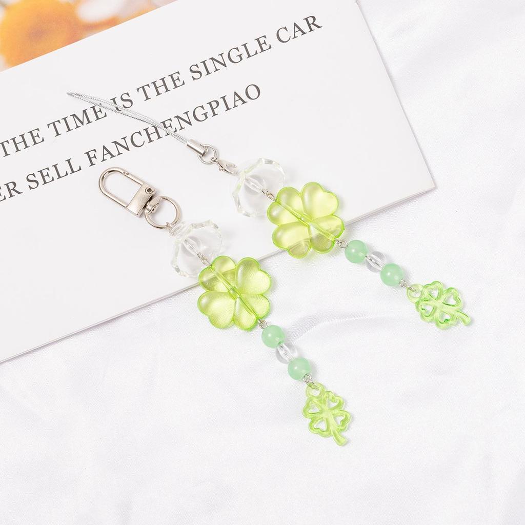 Handmade Green Four-Leaf Clover Beaded Phone Charm & Keychain