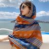 Dunhuang Wüstenschal - Qinghai Chaka Salzsee Ethno-Schal für Damen, Baumwolle Leinen Seide Mischung