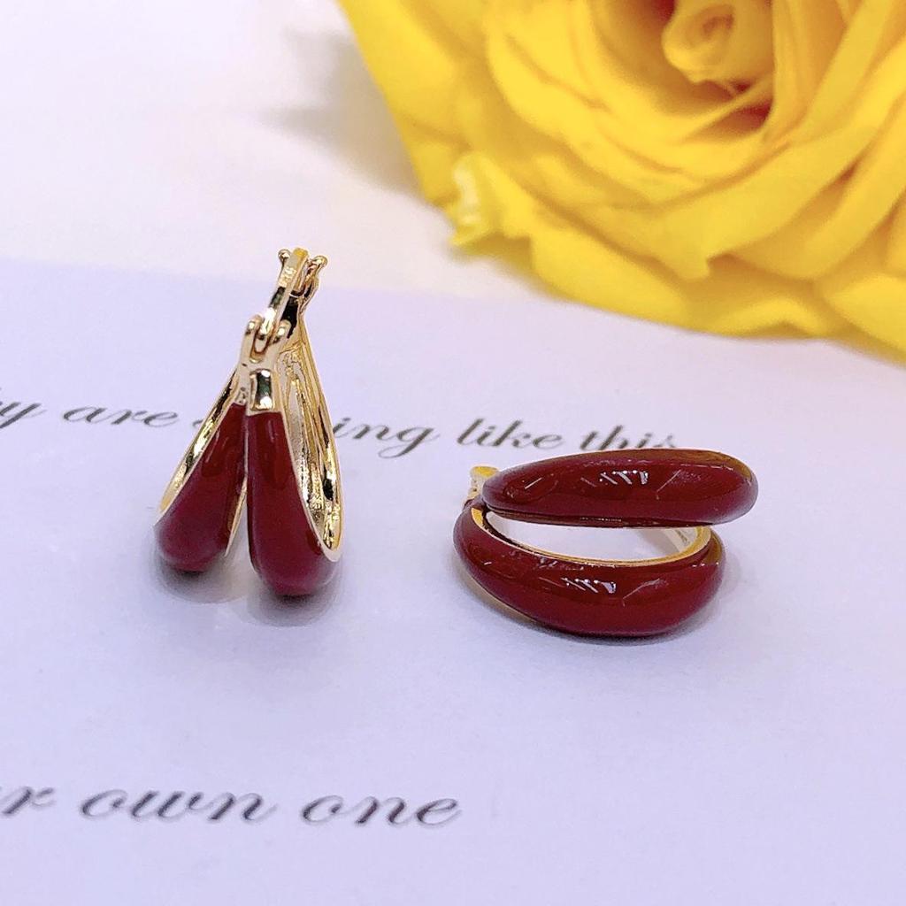 Red Multi-Layer Circle Stud Earrings - Elegant Autumn/Winter Women's Luxury