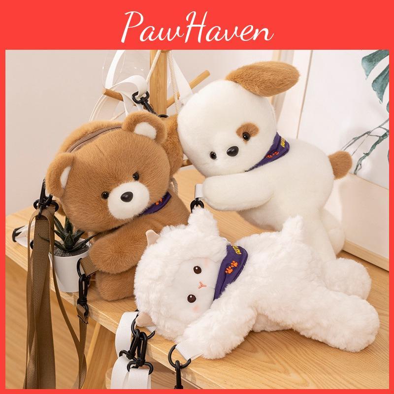 Plush Lightweight Backpack Fun Cartoon Doll Messenger Bag Bear Dog Gift Sheep
