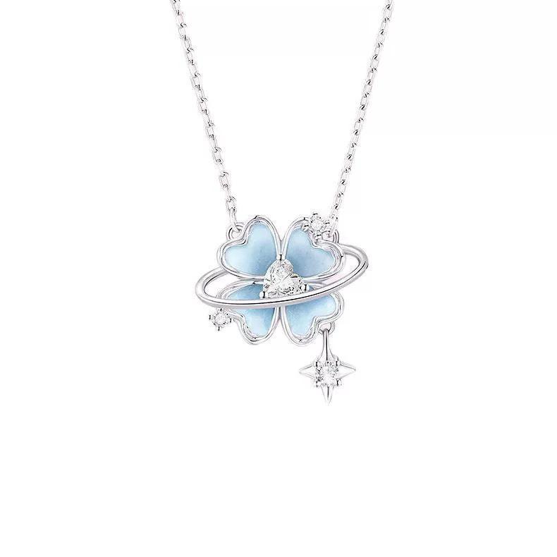 Four-Leaf Clover Luminous Enamel Necklace - Women's Light Luxury Clavicle Chain Holiday Gift