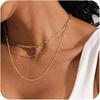Damen Vergoldetes Mehrschichtiges Choker-Halsketten-Set - 3-teilig Minimalistische Kubanische & Paperclip-Ketten