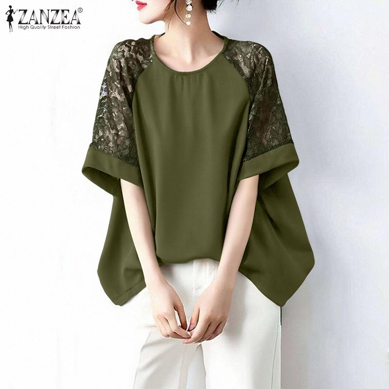 ZANZEA Damen Lässig Rundhals Spitze Einsatz 3/4 Ärmel Elegante Bluse