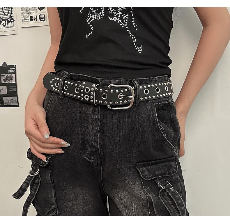 American Retro Leather Rivet Belt with Unique Design and Cool Style Waist Chain