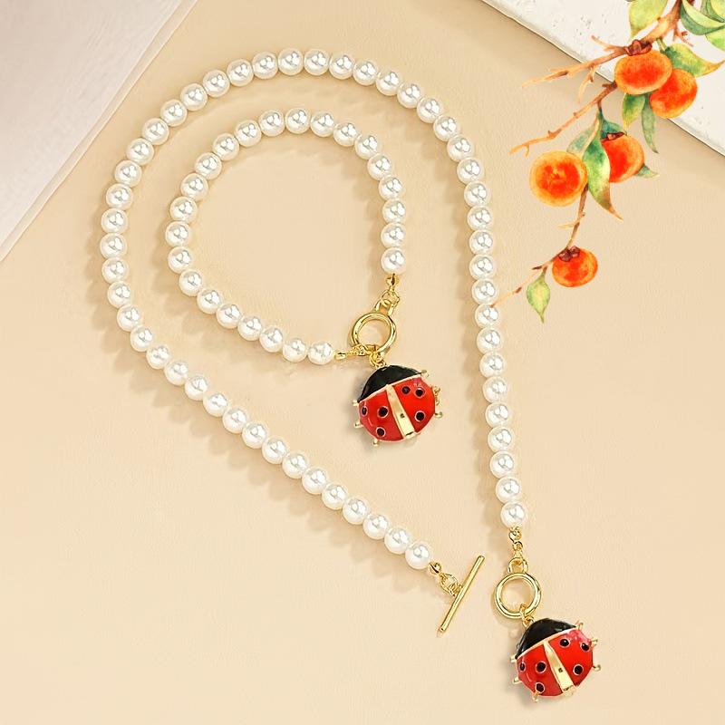 Elegante Roter Marienkäfer Perlenanhänger Halskette