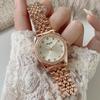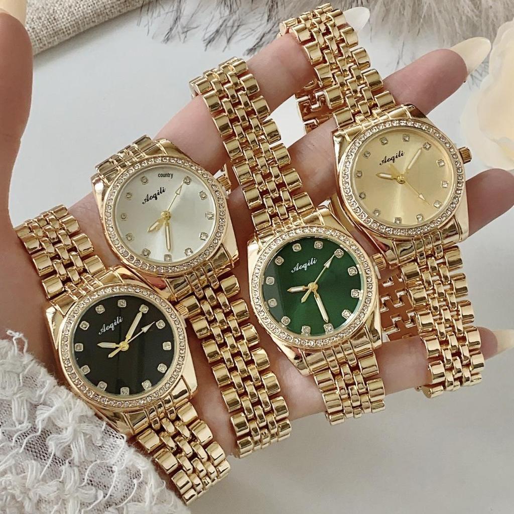 Quarz-Damenuhr mit großem Zifferblatt und Diamantakzenten - Stilvolles Stahlband